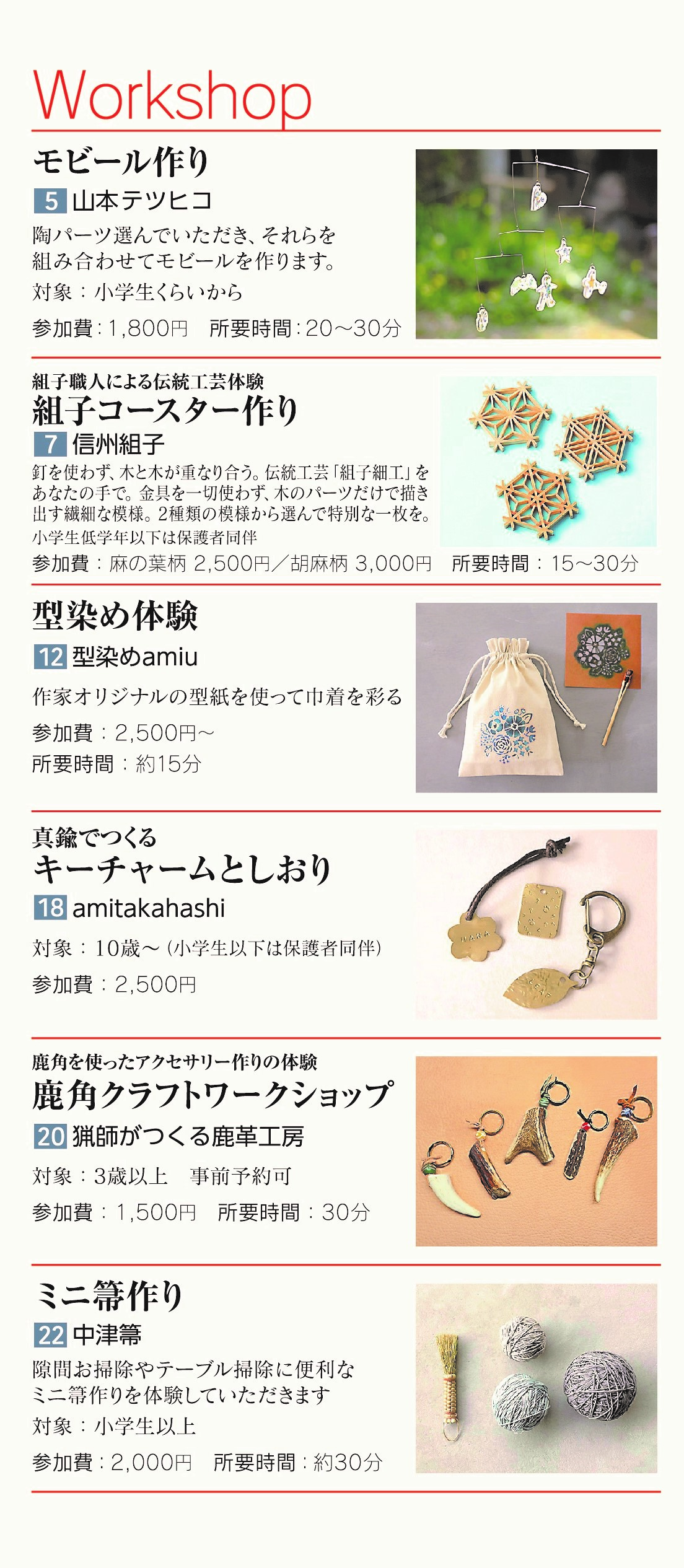 展示会場では、クラフトスクエアの出展者一覧や当日のワークショップ内容を掲載した